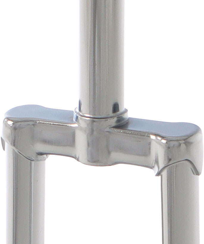 Gefertigt aus stabilem Stahl und in schlichtem Silber verchromt, ist die Gabel langlebig, pflegeleicht und bei Shows optisch dezent. Die Gabel ist für alle Standardnaben mit 100 mm Lagerabstand und Lagerdurchmessern von 40 mm bis 42 mm geeignet.