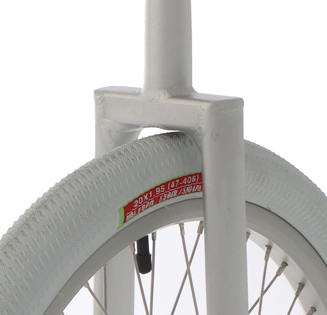 | Reifen: | 47-406mm (20 x 1.95 Zoll) Duro Fantasy (identisch Gusset Pimp), weiß, Luftdruck: max. 5,5 Bar (80psi) |