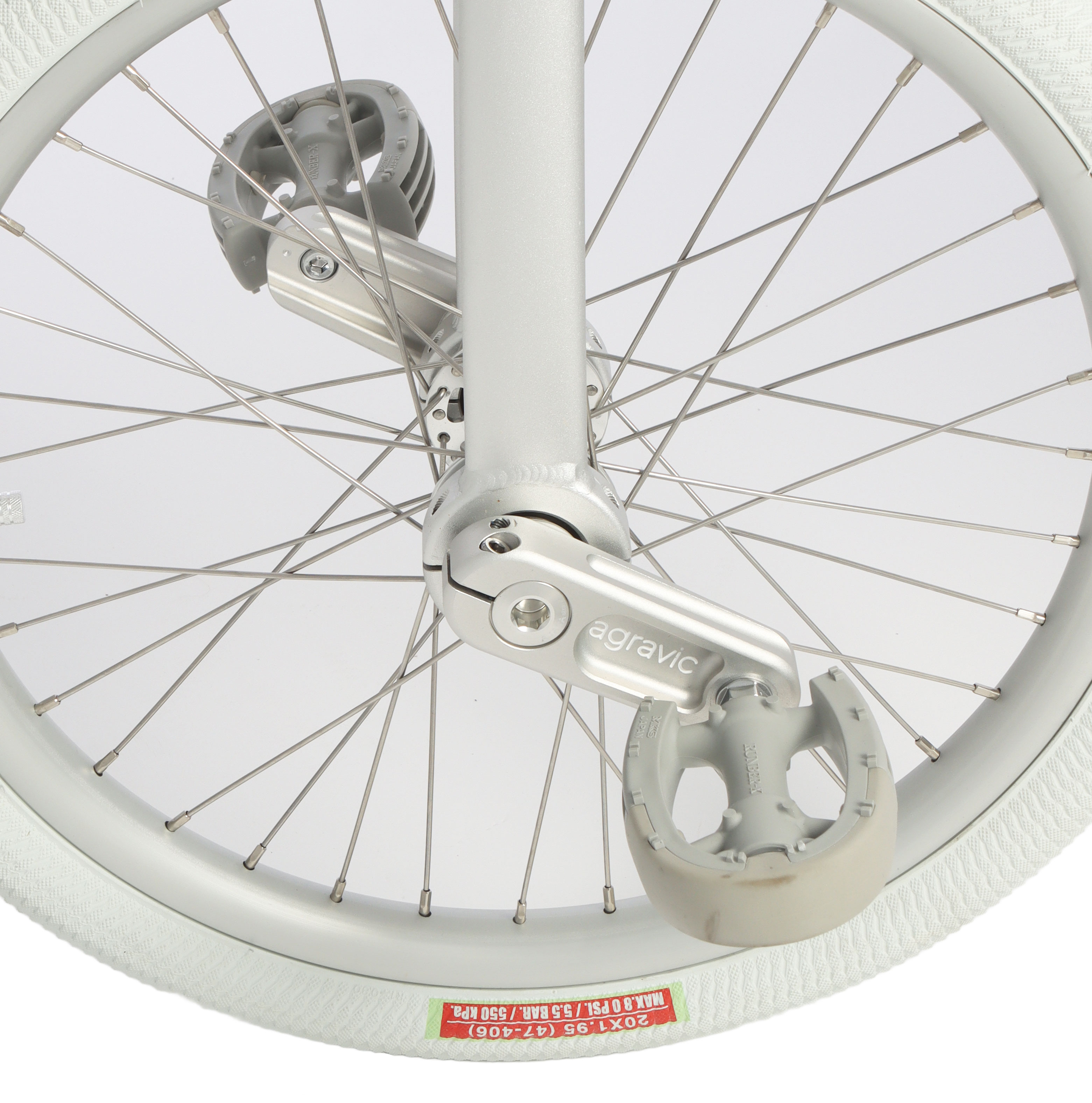 Im Mittelpunkt steht die bewährte agravic Gabel aus T6061 Aluminium. Sie war die erste Aluminiumgabel mit präzise eckiger Standfläche, entwickelt für Tricks wie Standup oder Coasting. Dank Hydroforming bietet sie maximalen Halt für den Fuß, optimales Handling und das perfekte Verhältnis aus Gewicht und Stabilität. Seit 2025 sind die Lagerschalen rund ausgeführt, wodurch keine störenden Kanten mehr im Fußbereich spürbar sind – perfekt für anspruchsvolle Tricks. Der minimale Abstand zum Reifen sorgt für präzise Kontrolle.