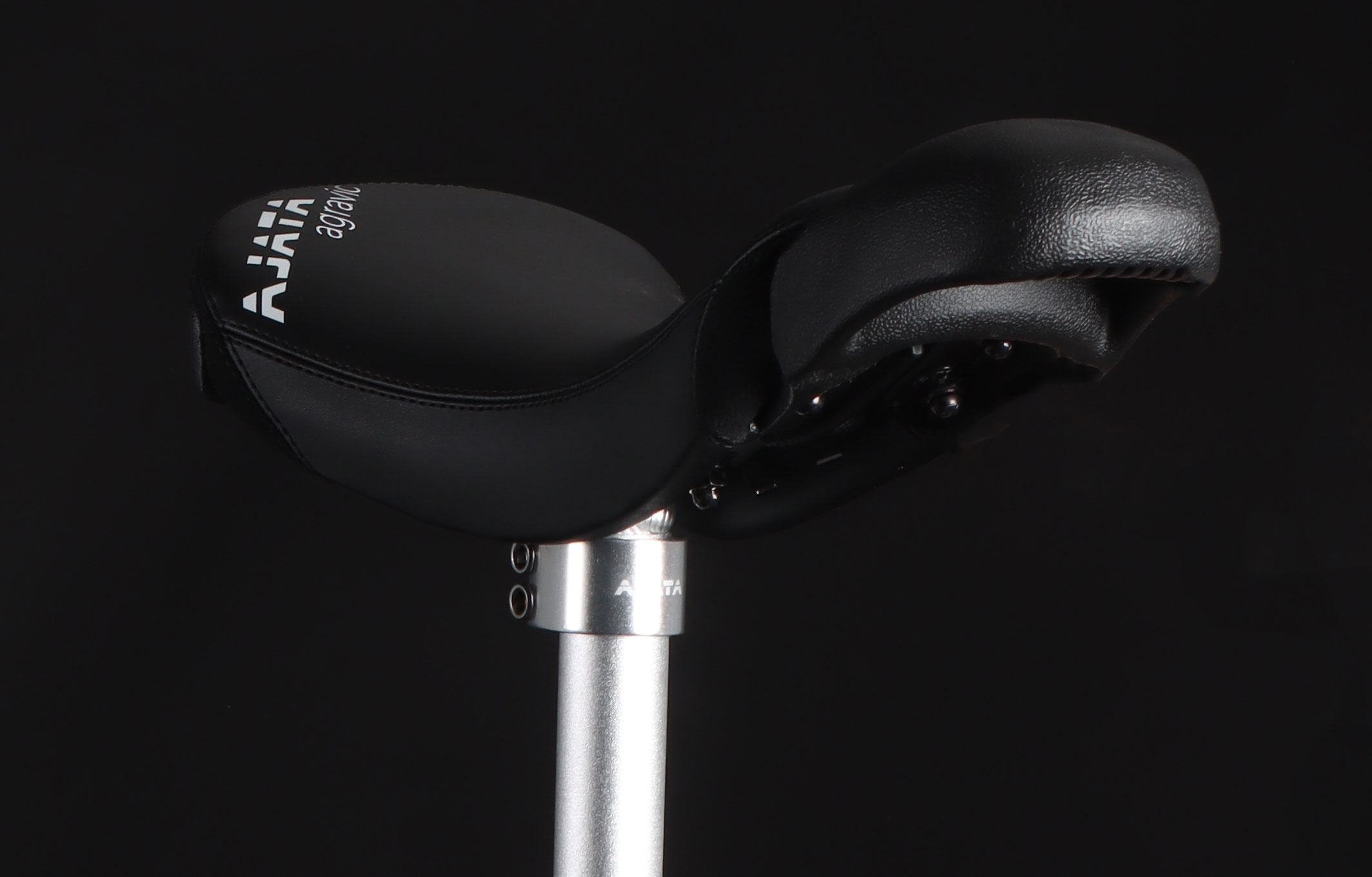 Der AJATA agravic Slim Sattel mit austauschbarem Griff ist straff gepolstert und flacher als der beliebte Gel Sattel – ideal um den Sattel bei Seatout-Tricks zu umgreifen. Die 2-Bolt Sattelklemme fixiert die Sattelstütze zuverlässig und verdrehsicher.