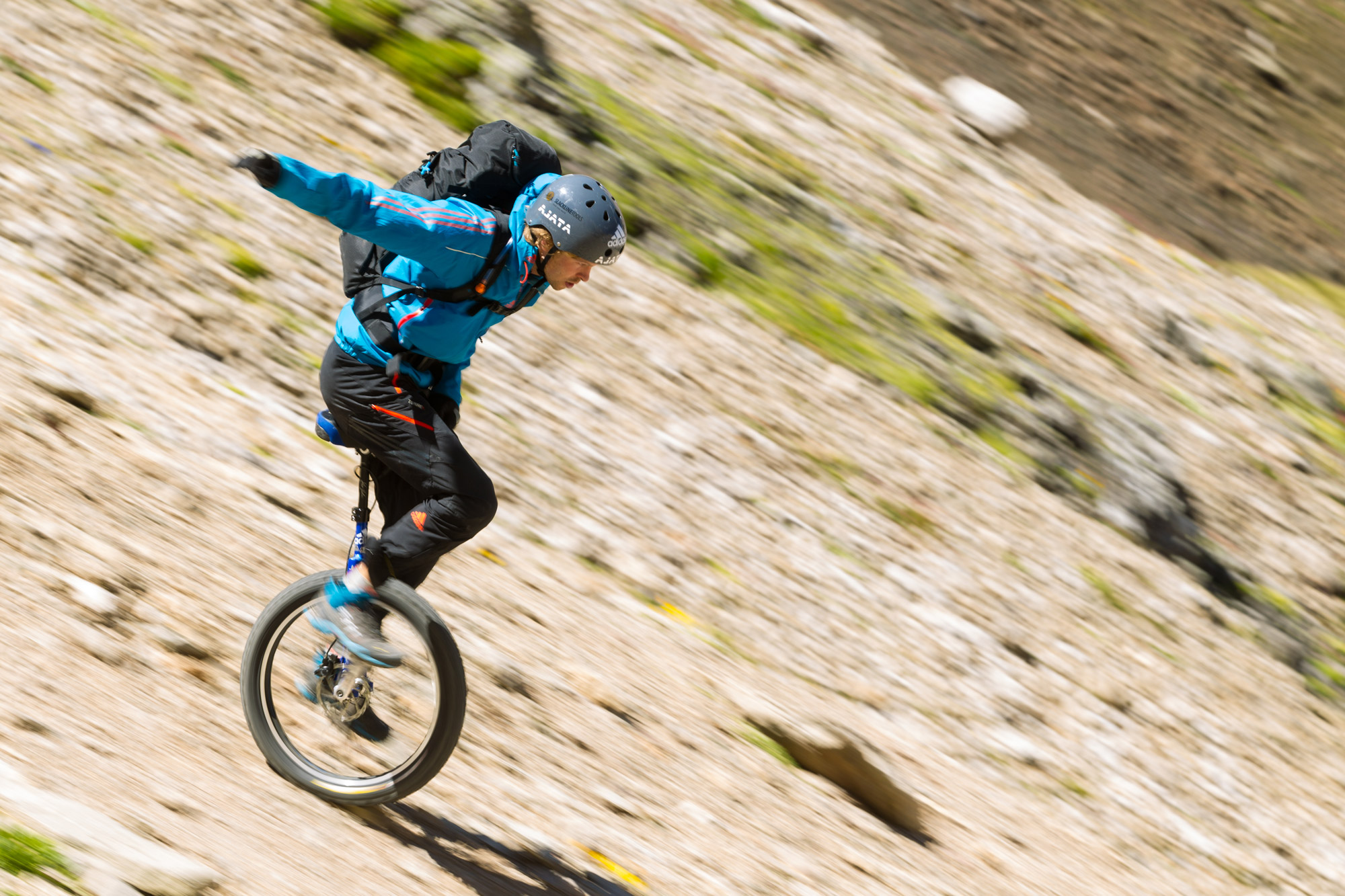 Perfect balance ! Extremes Einradfahren in den Bergen, auch bekannt als Mountain Unicycling (MUni), ist eine faszinierende und anspruchsvolle Sportart. Diese Disziplin verbindet die technischen Herausforderungen des Einradfahrens mit den rauen Bedingungen des Berggeländes. Für alle, die sich für diese aufregende Sportart interessieren, bieten wir die perfekte Ausrüstung. Das Foto zeigt Lutz Eichholz aus der AJATA Familie.