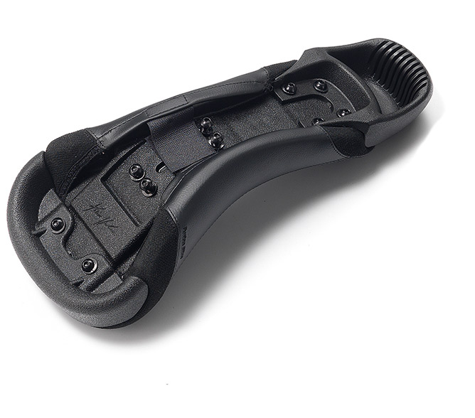 Die besonders stabile Basisplatte dieses KH-Sattels wird im Gegensatz zu anderen Sätteln mit innenliegeneden Gewindeeinsätzen verarbeitet. Dank dieser Eigenschaft und einer zusätzlichen Verstärkungsplatte im Vergleich zu früheren Modellen hast du noch mehr Stabilität für ungebremste Power auf dem Rad!