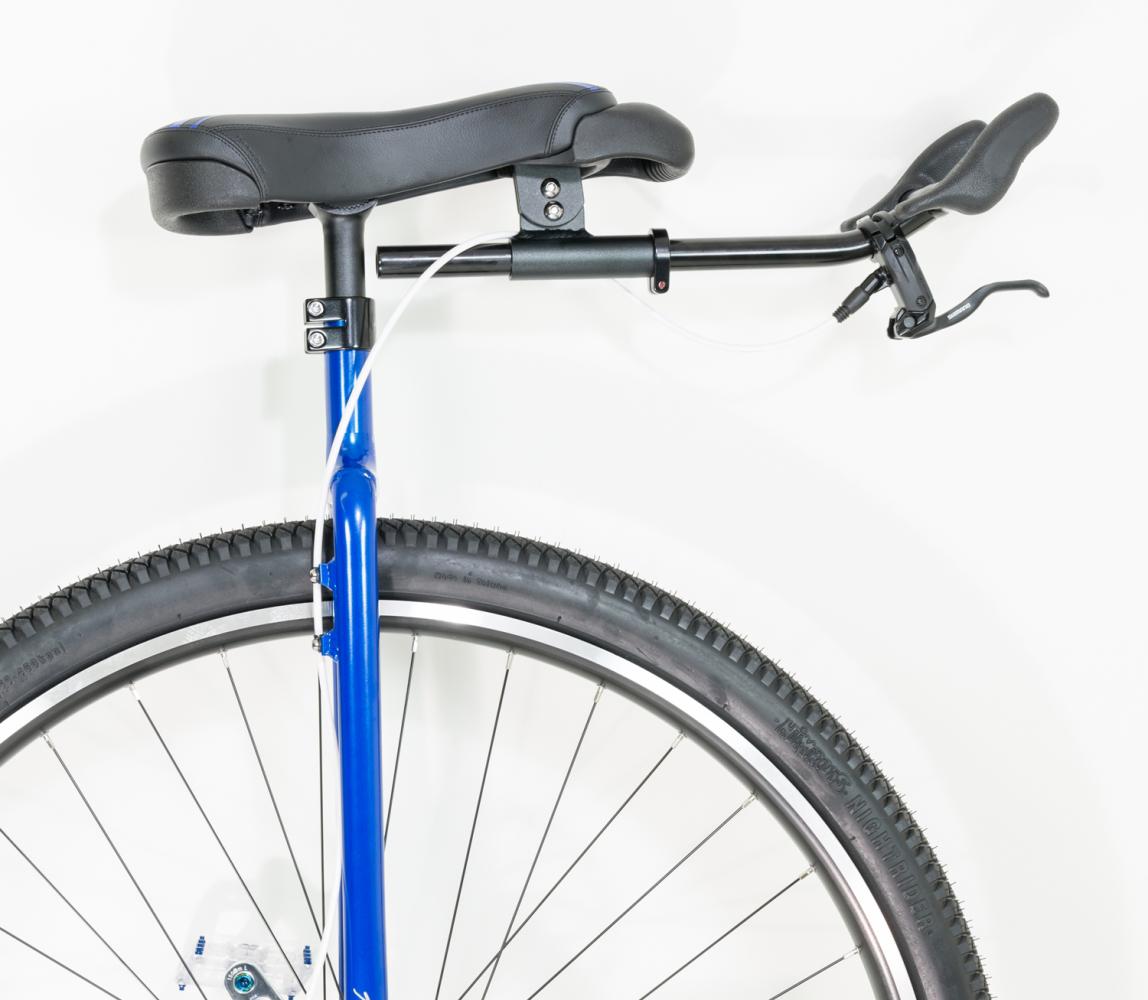 Der Lenker wird mit den beiliegenden Schrauben an den Sattel montiert. Die beiliegende Verstärkungsplatte sorgt für eine verwindungssteife Nutzung. Ein Bremshebel lässt sich mittig zwischen den Bar-Ends montieren oder an der zentralen Stange.